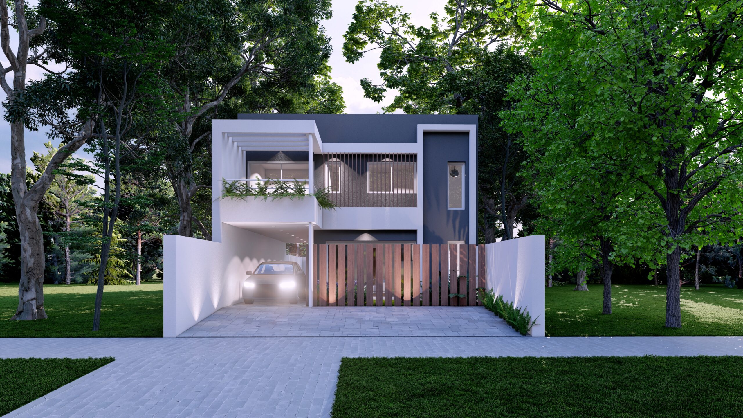 Esta vivienda de dos plantas combina estética moderna con distribución eficiente, adaptada a las necesidades de una vida familiar actual.